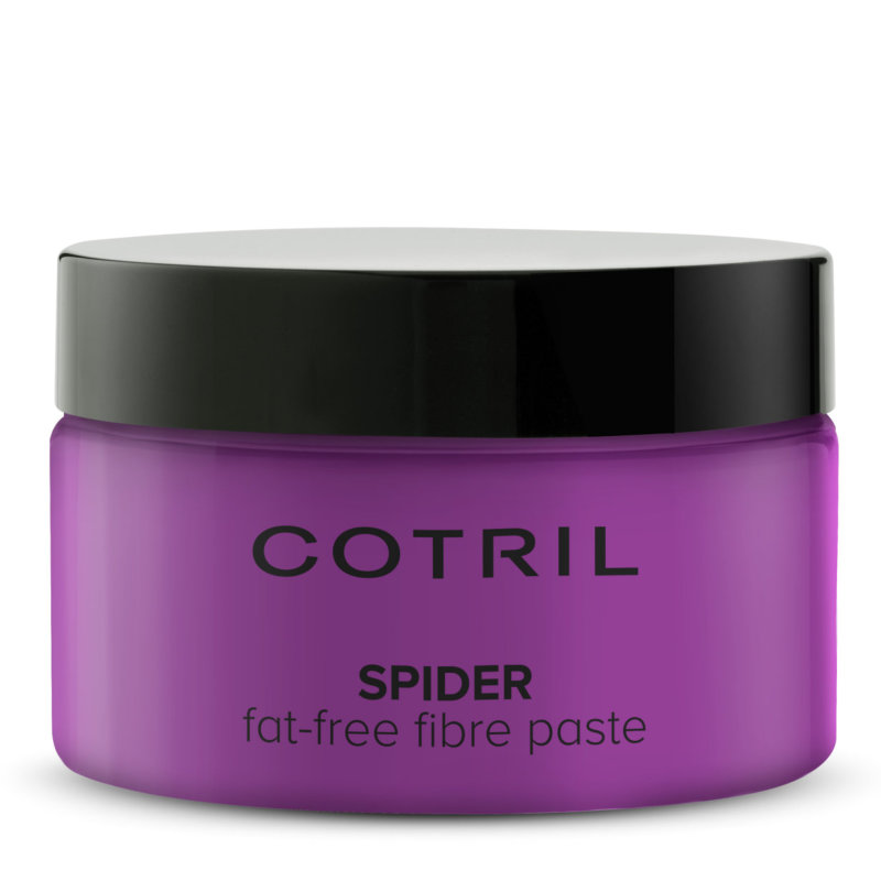 Cotril SPIDER (Fat-Free Fire Paste) je inovativní nemastná fibrózní pasta na vlasy používána profesionály v oboru k vytvoření nejrůznějších typů účesů s efektem pavučiny. Fibrózní pasta s glycerinem, polymery a minerálními vosky navrátí vlasům objem a hustotu. Cotril SPIDER dodá vlasům extra silnou fixaci díky svému progresivními složení na stupni 5. Pasta vlasy upravuje a definuje, ale nemastí.