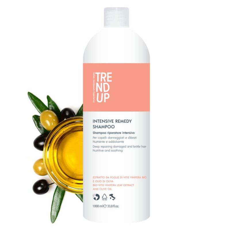 Intenzivní obnovující šampón Edelstein Trend Up Intensive Remedy (Shampoo Riparatore Intensivo/Deep Repairing Damaged and Brittle Hair/Nutritive and Soothing) je specifický šampón pro obnovu poškozených a křehkých vlasů. Péče o extrémně zničené vlasy, která dodává nový život vlasovému vláknu díky účinkům vinné révy a olivového oleje s okamžitým posilujícím a vyplňujícím efektem.